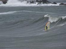 A great day of quite strong Tramontana with a big swell running. Lots of people windsurfing Fornells, Addaia and CALA TIRANT - where John took these pics.